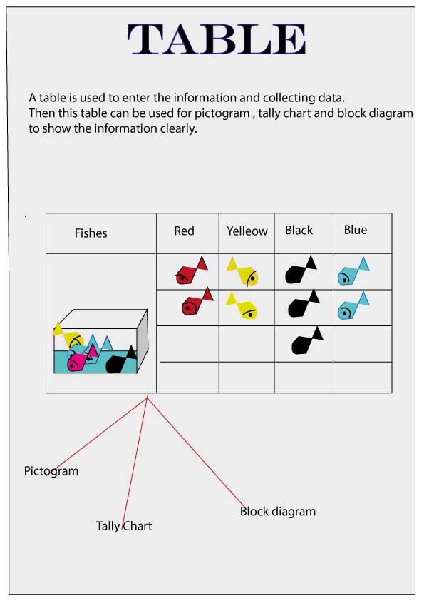 • After preparing this table, it can be used as a pictogram, block diagram and tally chart.